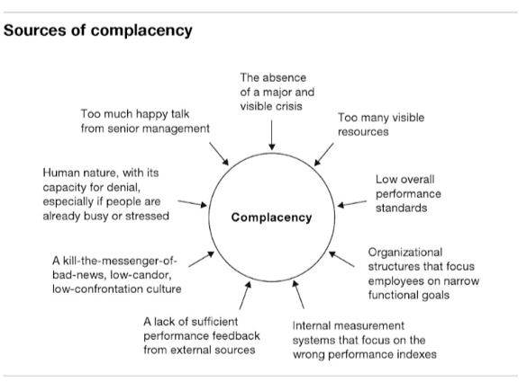 “…if many others don’t feel the sense of urgency, the momentum for change will probably die far short of the finish line. People will find a thousand ingenious ways to withhold cooperation from a process that they sincerely think is unnecessary or wrongheaded”(p. 38).